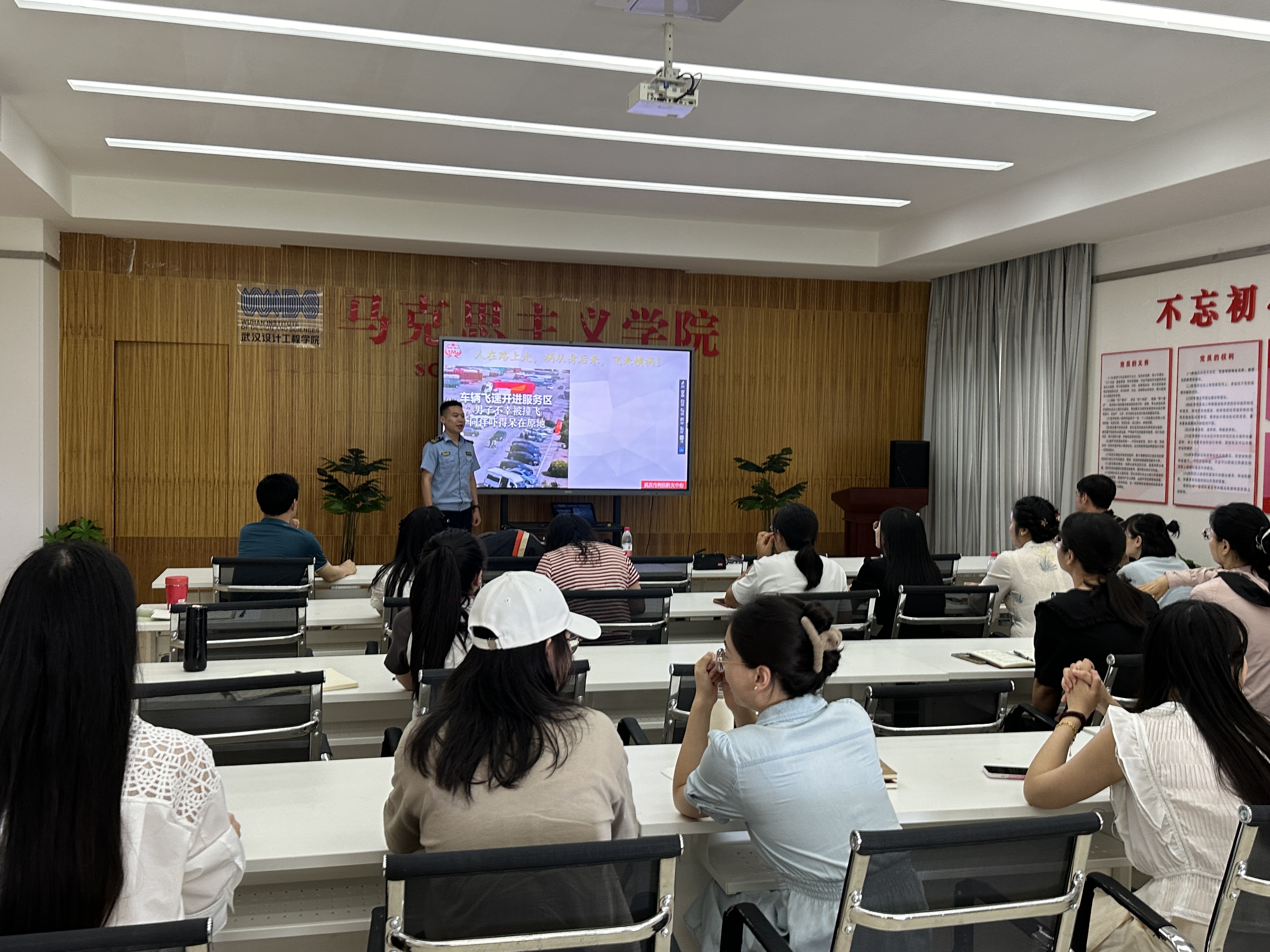 培训伊始,华智为教官以“安全出行”为切入点,结合近年来发生的典型交通事故案例,深入剖析了驾驶过程中易被忽视的安全隐患。他通过视频还原、数据解读等方式,重点强调了疲劳驾驶、车辆故障应急处理不当、车内易燃物品管理疏漏等问题的严重后果,并提醒教师们在日常生活中要严格遵守交通规则,定期检查车辆安全性能,养成良好的驾驶习惯。华教官指出:“安全驾驶不仅是个人责任,更是对家庭和社会的承诺,每一位交通参与者都应成为安全链条上的坚实一环。”