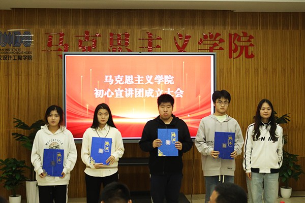 与会领导为宣讲团首批主讲人、团队成员及指导老师颁发了聘书。